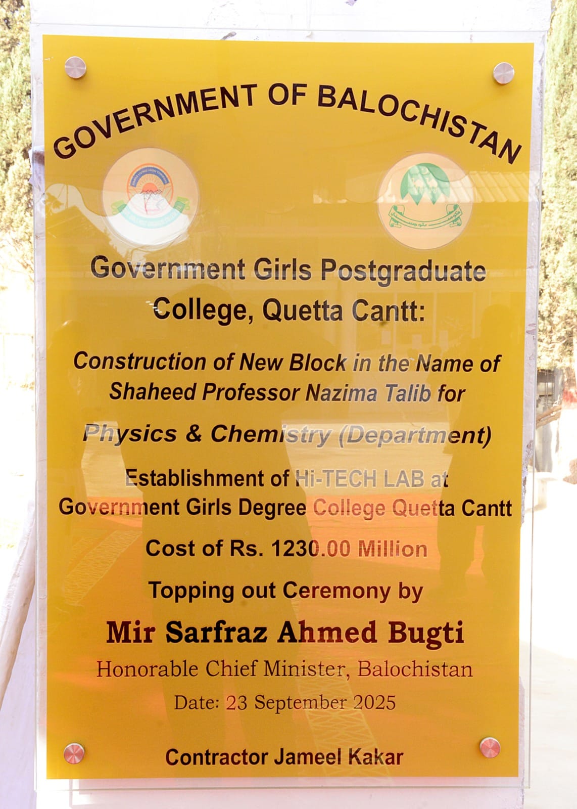 A significant visit was conducted to Government Girls Postgraduate College, Quetta Cantt, on December 10, 2025, by a high-level delegation led by the Honorable Chief Minister of Balochistan, Mir Sarfaraz Ahmed Khan Bugti . The purpose of the visit was to inspect the ongoing construction of the Shaheed Nazima Talib Block and to review the institution’s developmental and academic progress. The delegation was accompanied by the distinguished journalist and host, Mr. Sohail Warraich , whose presence highlighted the national importance of the occasion.